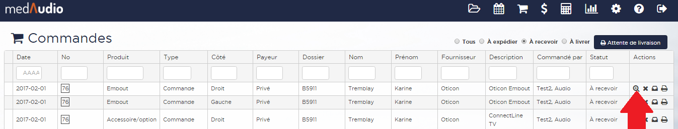 Pour modifier les notes d'une commande, suivre la procédure ci-dessous