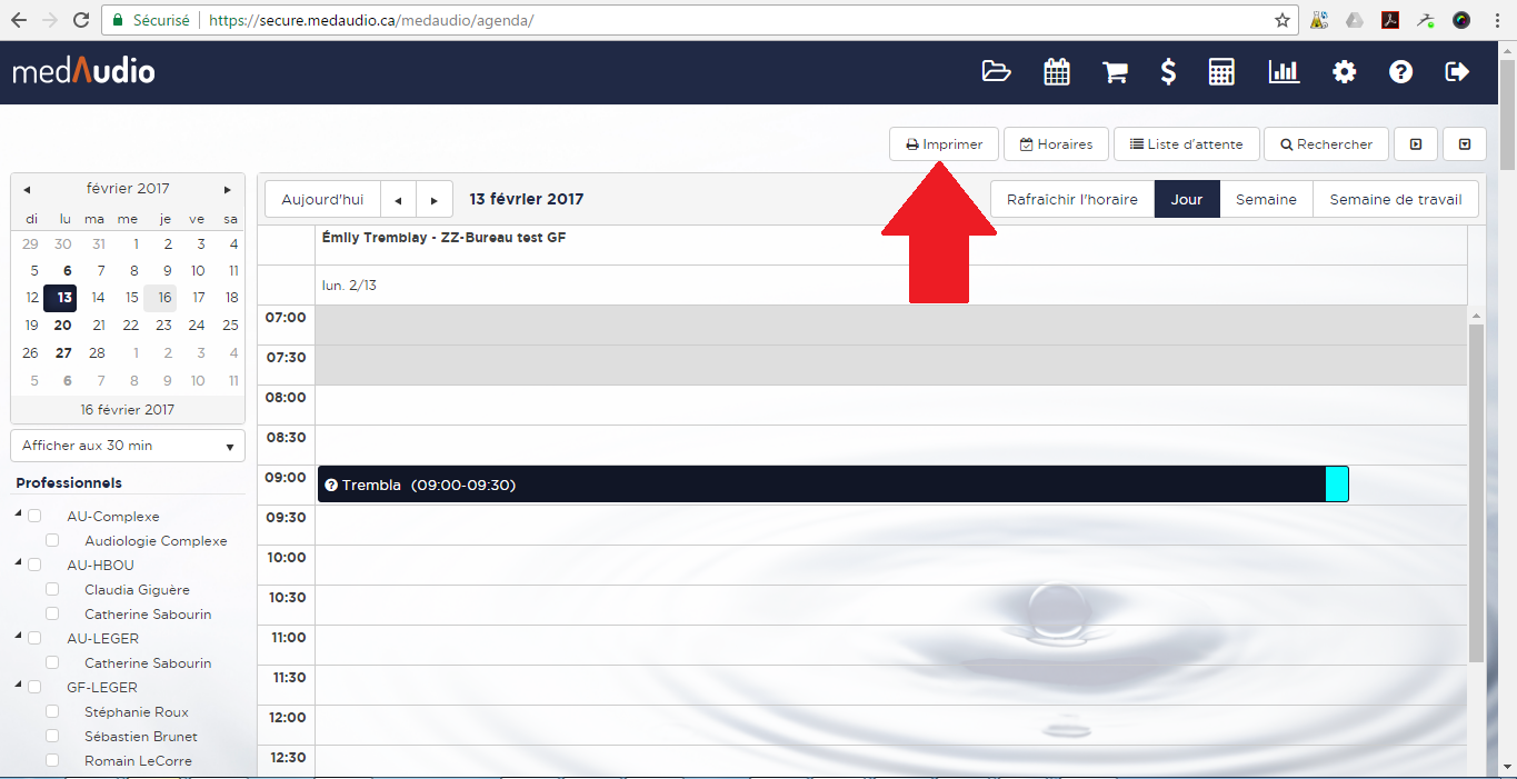 Pour afficher l'icône d'impression, UN SEUL professionnel doit être sélectionné. SI vous avez sélectionné 2 ou plusieurs professionnels, l'icône n'apparaît.