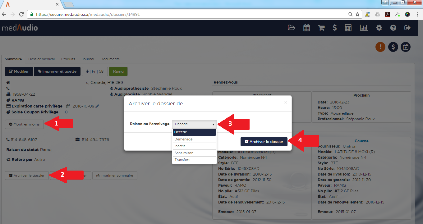 Archiver un dossier (Décédé, déménagé, inactif) Permanently deleted user 22 août 2024 07:28 Mise à jour S’abonner Suivre les étapes ci-dessous pour archiver un dossier (Le rendre inactif). Commentaires 0 commentaire Vous devez vous connecter pour laisser un commentaire.