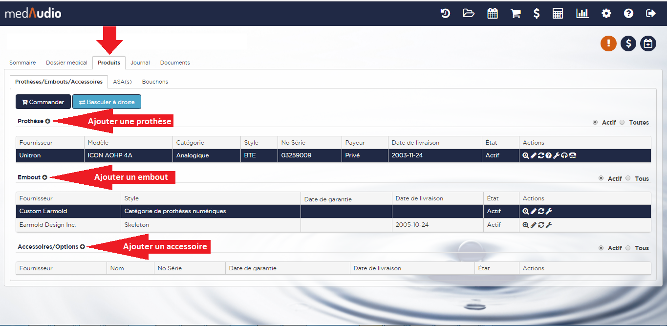 2. Il n'est pas possible d'ajouter deux prothèses du même organisme payeur pour la même oreille. Exemple : Il est impossible pour un patient d'avoir deux prothèses RAMQ actives à la même oreille. Si le patient a une prothèse d'un organisme payeur à une oreille et cette prothèse est là par erreur, il faut d'abord la rendre inactive (Cliquez ici pour voir comment) puis vous pourrez ajouter la bonne prothèse. Par contre un patient peut avoir plusieurs prothèses privés pour la même oreille.