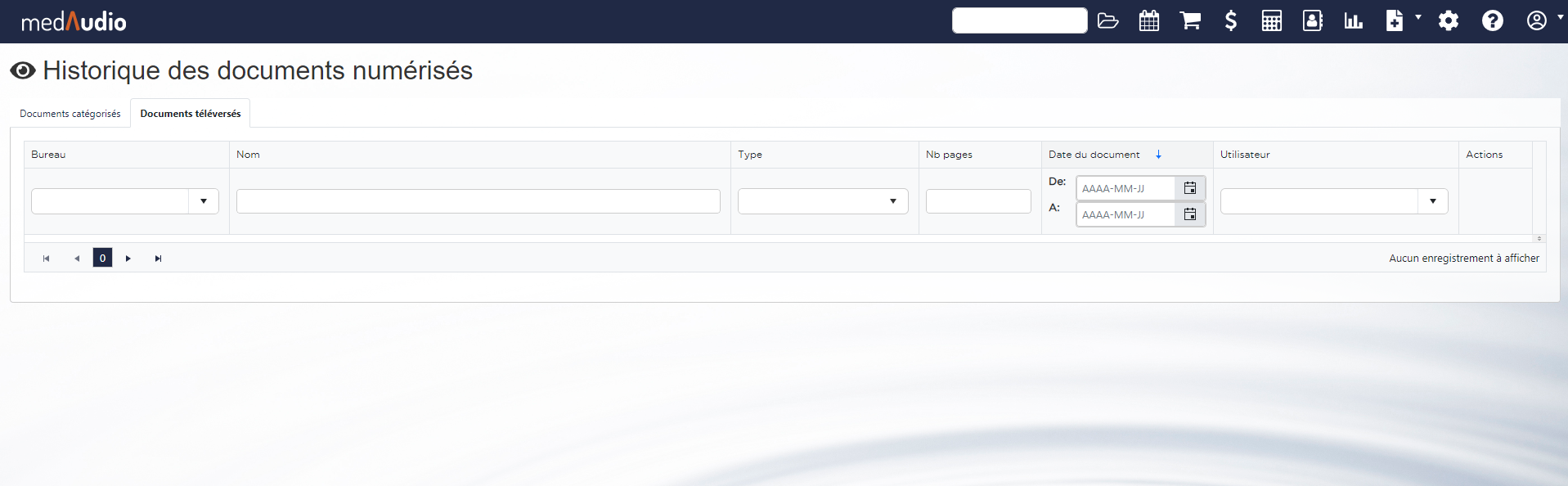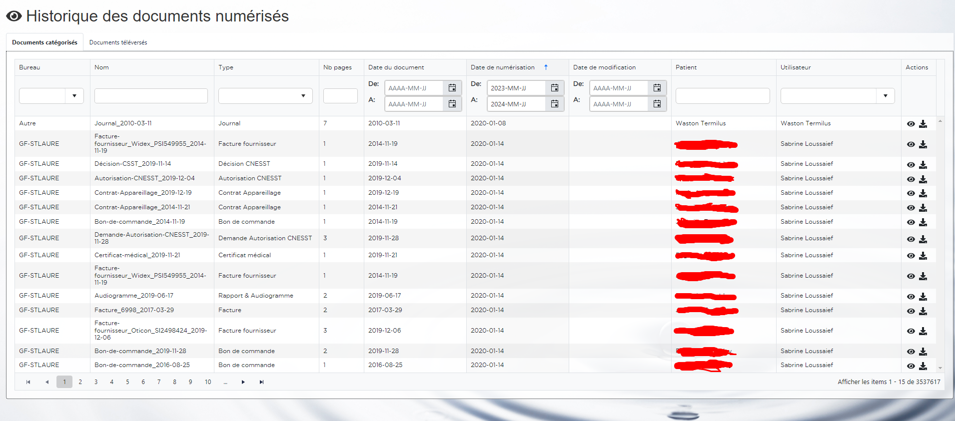 - Le premier onglet " Documents catégorisés" représente les documents numérisés pour un patient dans un bureau.