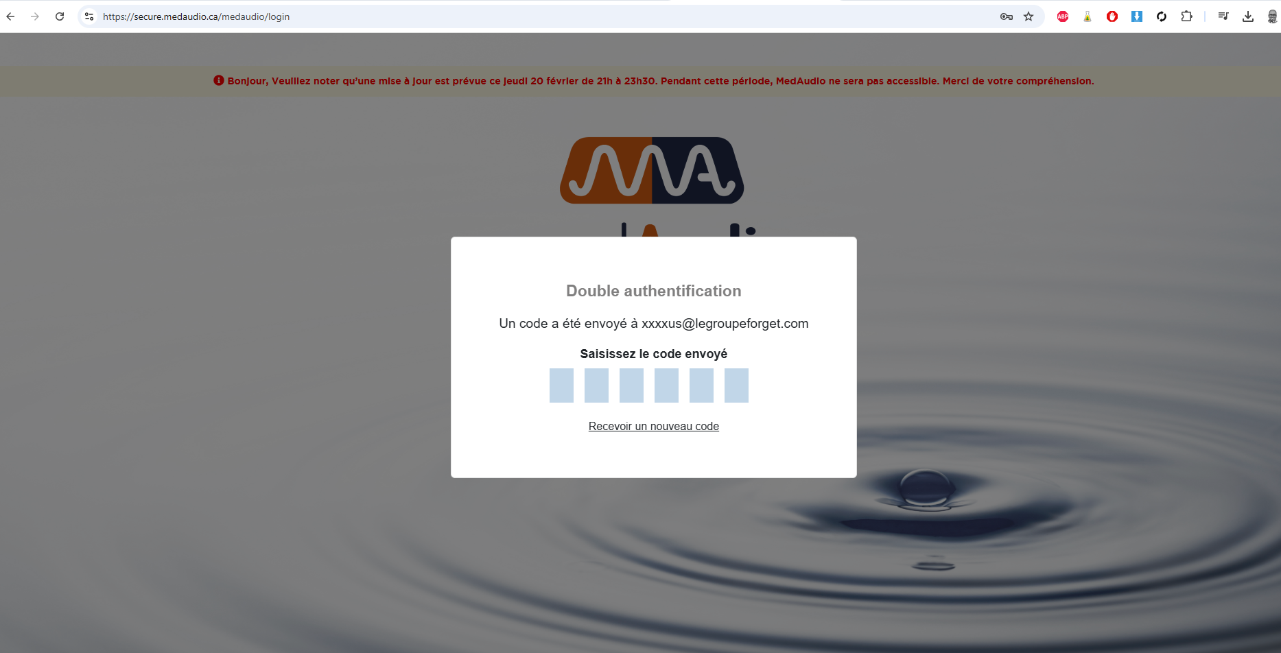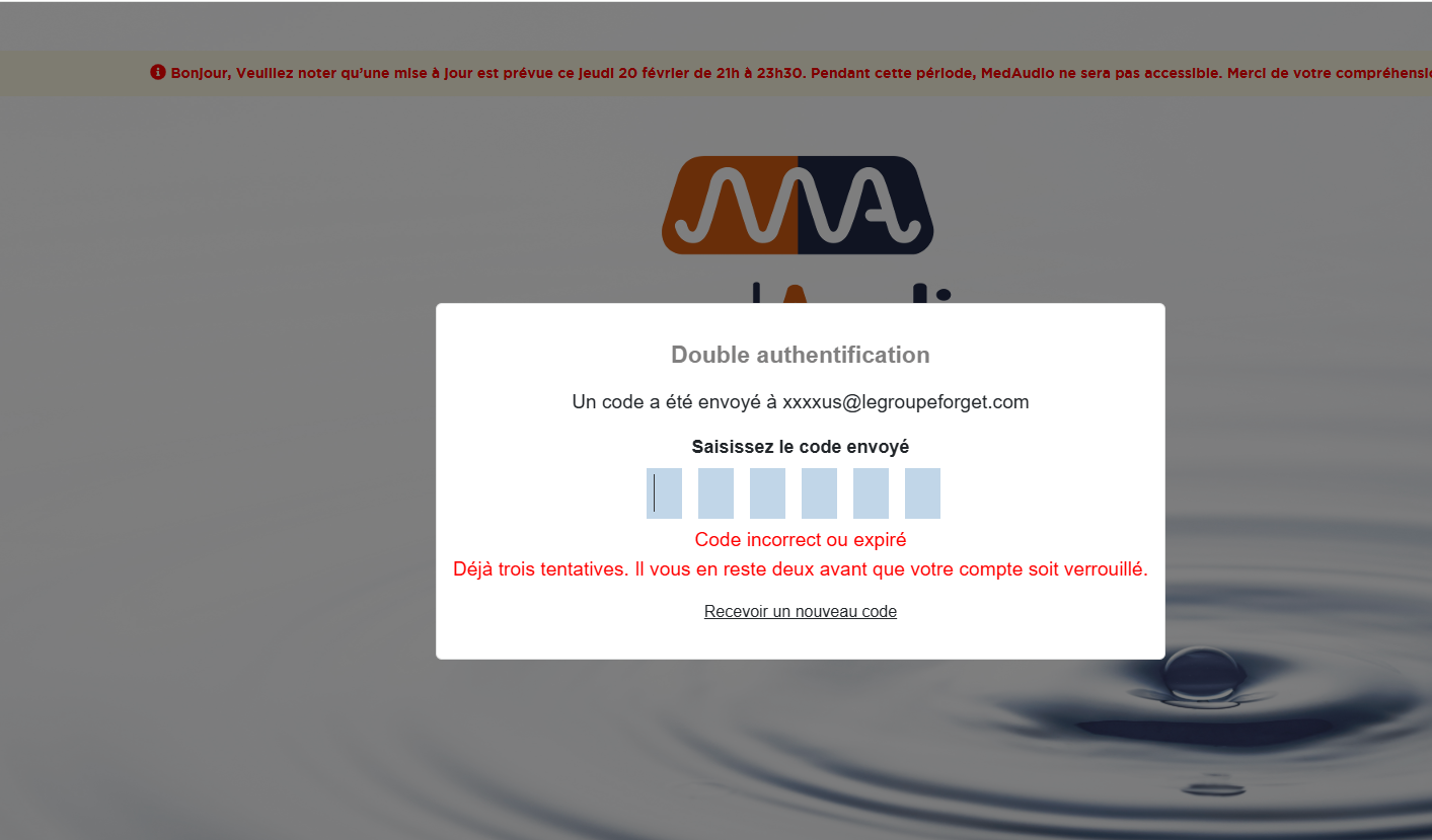 Actuellement, lors de la connexion à MedAudio, l'utilisateur entre simplement son login et son mot de passe, sans aucune vérification supplémentaire. Il n'y a pas de sécurité supplémentaire pour s'assurer de l'identité de l'utilisateur.